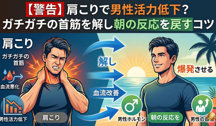 「最近、肩が重くて仕事に集中できない…」 「マッサージに行っても、すぐに肩こりがぶり返す」 そんな悩みを抱えているあなた。 実は、その「肩こり」があなたの夜の自信を奪っているかもしれません。 「肩と男性機能に何の関係があるの?」 そう思うかも... -