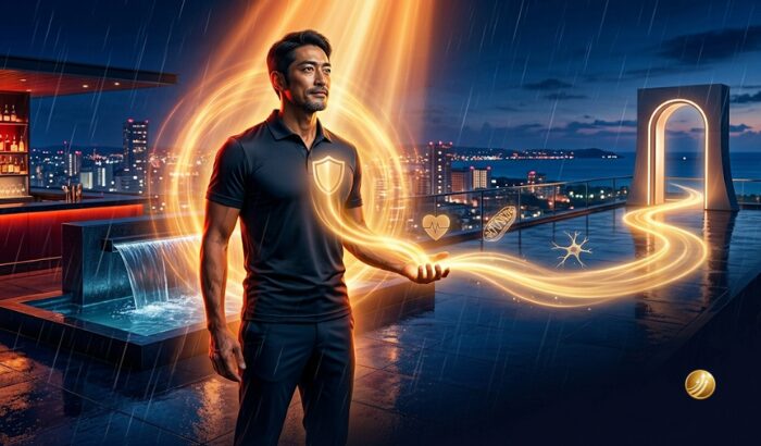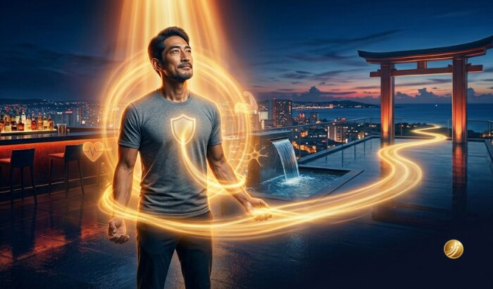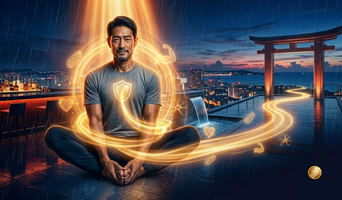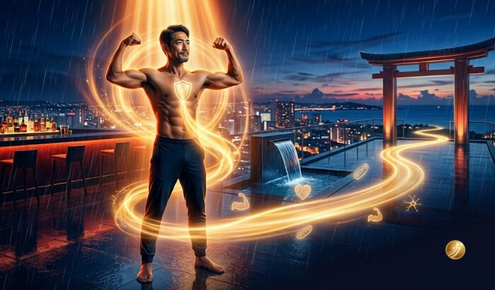 沖縄の夜のスカイラウンジで、体内の巡りを呼び覚まし、再び「攻め」の姿勢を取り戻した瞬間。